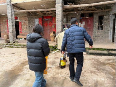 为深入贯彻落实国家资助政策,切实加强寒假期间对特殊学生群体的关怀,把学校党委的温暖精准送达困难学生家庭,2026年1月21日,在化学与制药工程学院党总支统一部署下,学生工作办公室辅导员周永福、夏玉松赴南川区福寿镇向家塝村走访慰问家庭经济困难学生代表,为其送上米、油、牛奶等暖心慰问品。